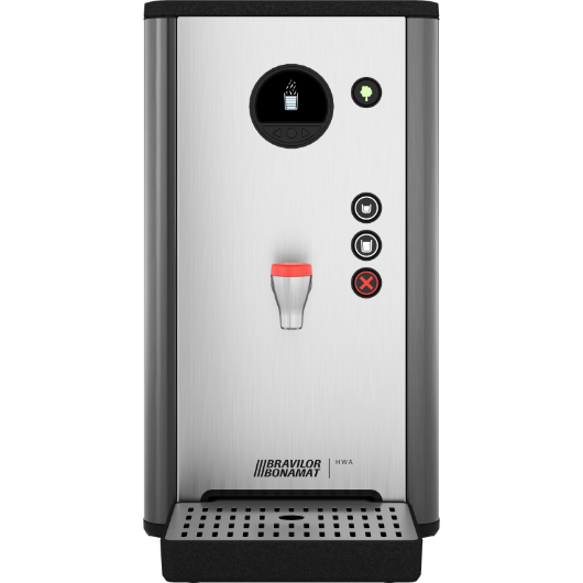 HWA 6D har mer å tilby enn bare de grunnleggende funksjonene, som for eksempel hurtigdispenser for varmt vann og en høy timekapasitet. Maskinen er utformet som en 360 graders løsning, noe som gjør at den ser pen ut fra alle vinkler. Privat merkeprofilering er valgfritt. Det kompakte smale designet er plassbesparende.HWA 6D er meget brukervennlig. LCD-displayet viser tydelig hva du må gjøre, og gjør at du kan programmere maskinen enkelt. I tillegg er HWA 6D vedlikeholdsvennlig. Høykvalitetsdeler fra Bravilor Bonamat er bærekraftige. Dette resulterer i lite vedlikehold og en lang levetid.